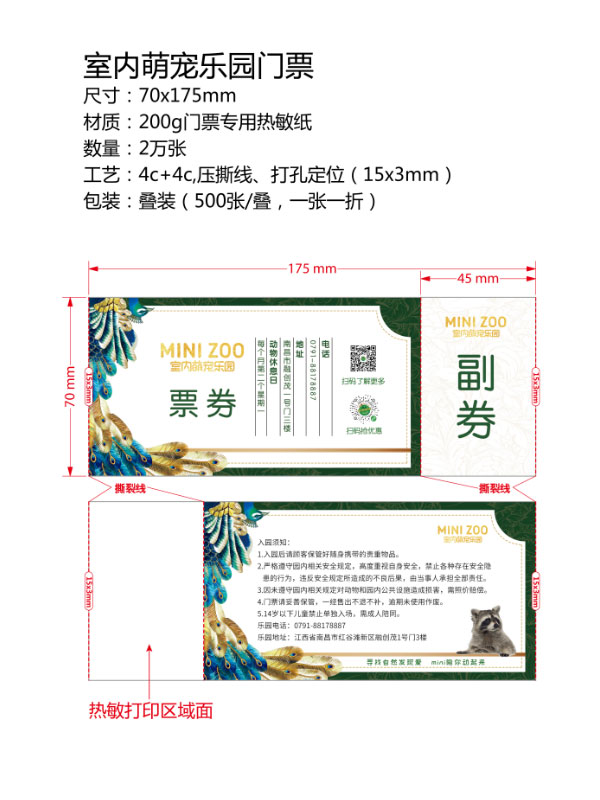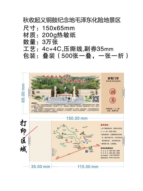 印刷工藝:卷裝門票、折疊門票、撕線(每張之間的撕線,正副券之間的撕線)、定位(孔位定位,黑標(biāo)定位)、流水號碼(序列號,度亂碼)、可變數(shù)據(jù)(可變二維碼,可變條碼等)。