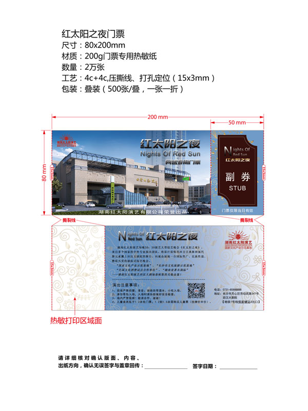 印刷工藝:卷裝門票、折疊門票、撕線(每張之間的撕線,正副券之間的撕線)、定位(孔位定位,黑標(biāo)定位)、流水號碼(序列號,度亂碼)、可變數(shù)據(jù)(可變二維碼,可變條碼等)。